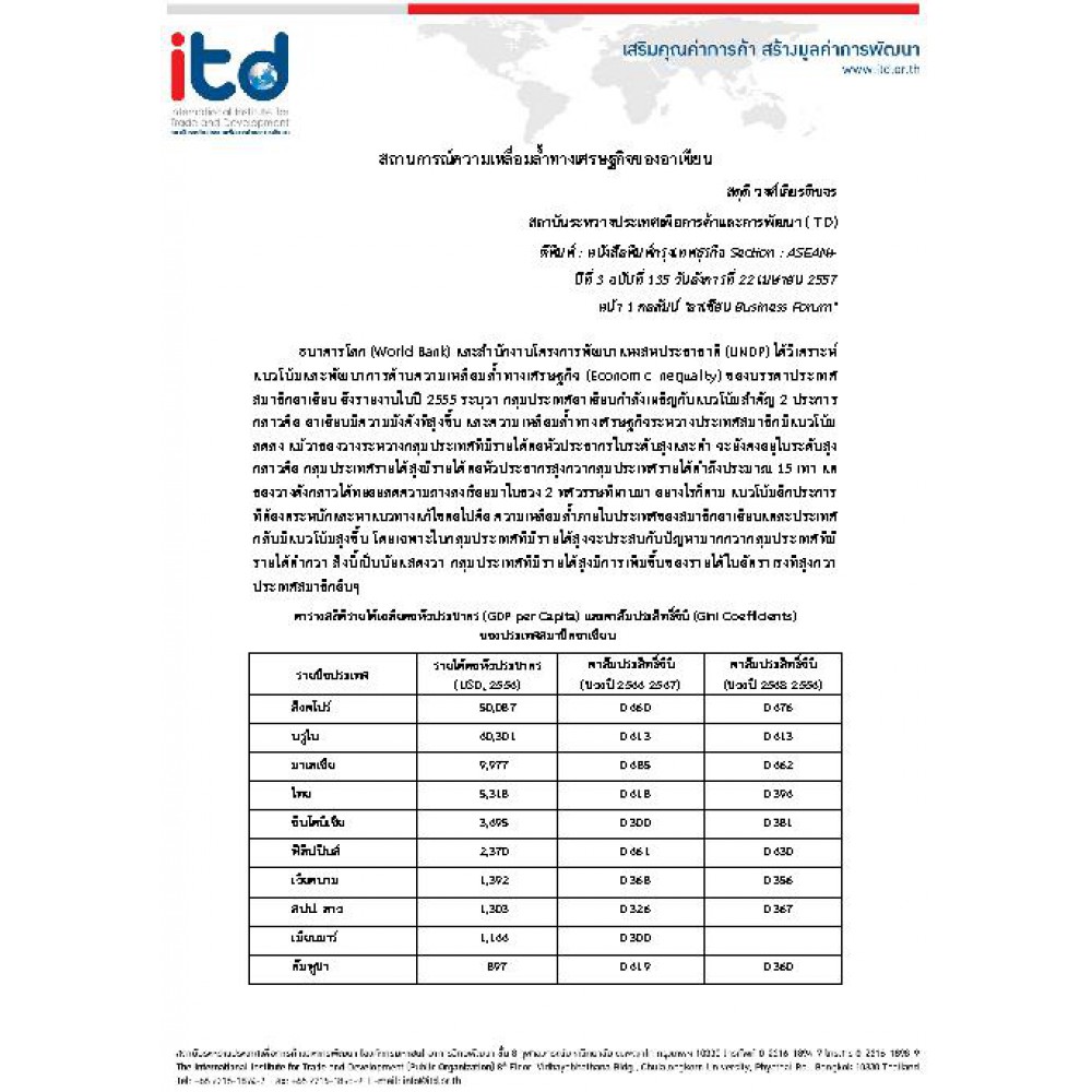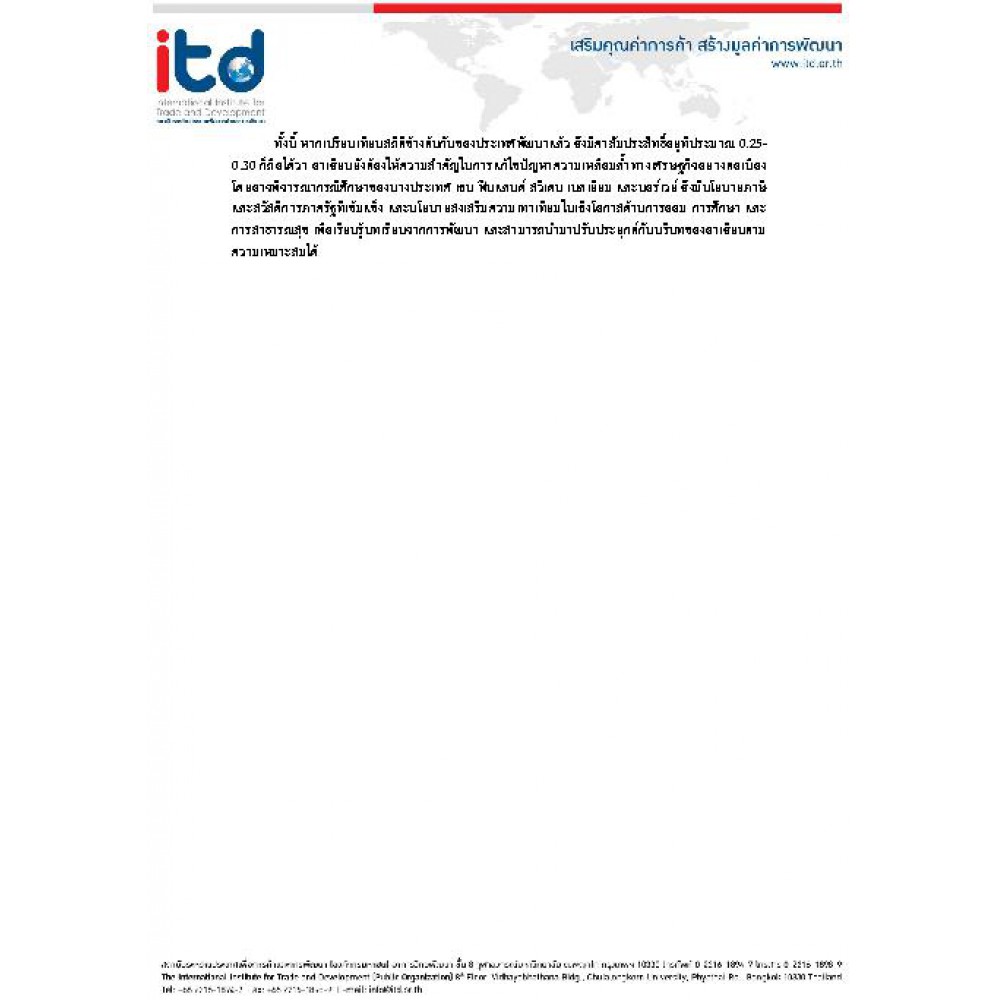 บทความวิจัยของสถาบันระหว่างประเทศเพื่อการค้าและการพัฒนา ITD