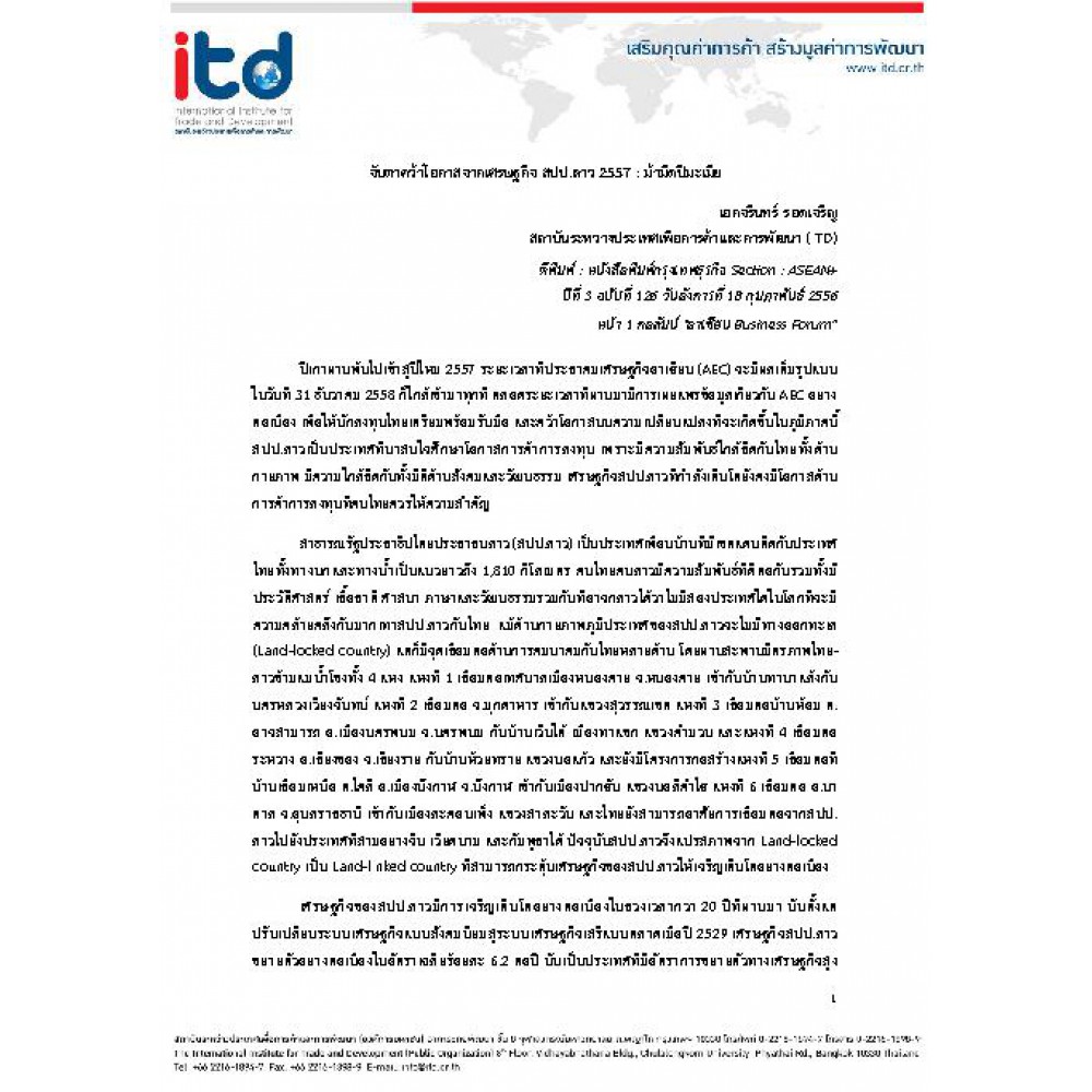 บทความวิจัยของสถาบันระหว่างประเทศเพื่อการค้าและการพัฒนา ITD