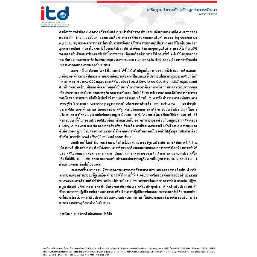 บทความวิจัยของสถาบันระหว่างประเทศเพื่อการค้าและการพัฒนา ITD