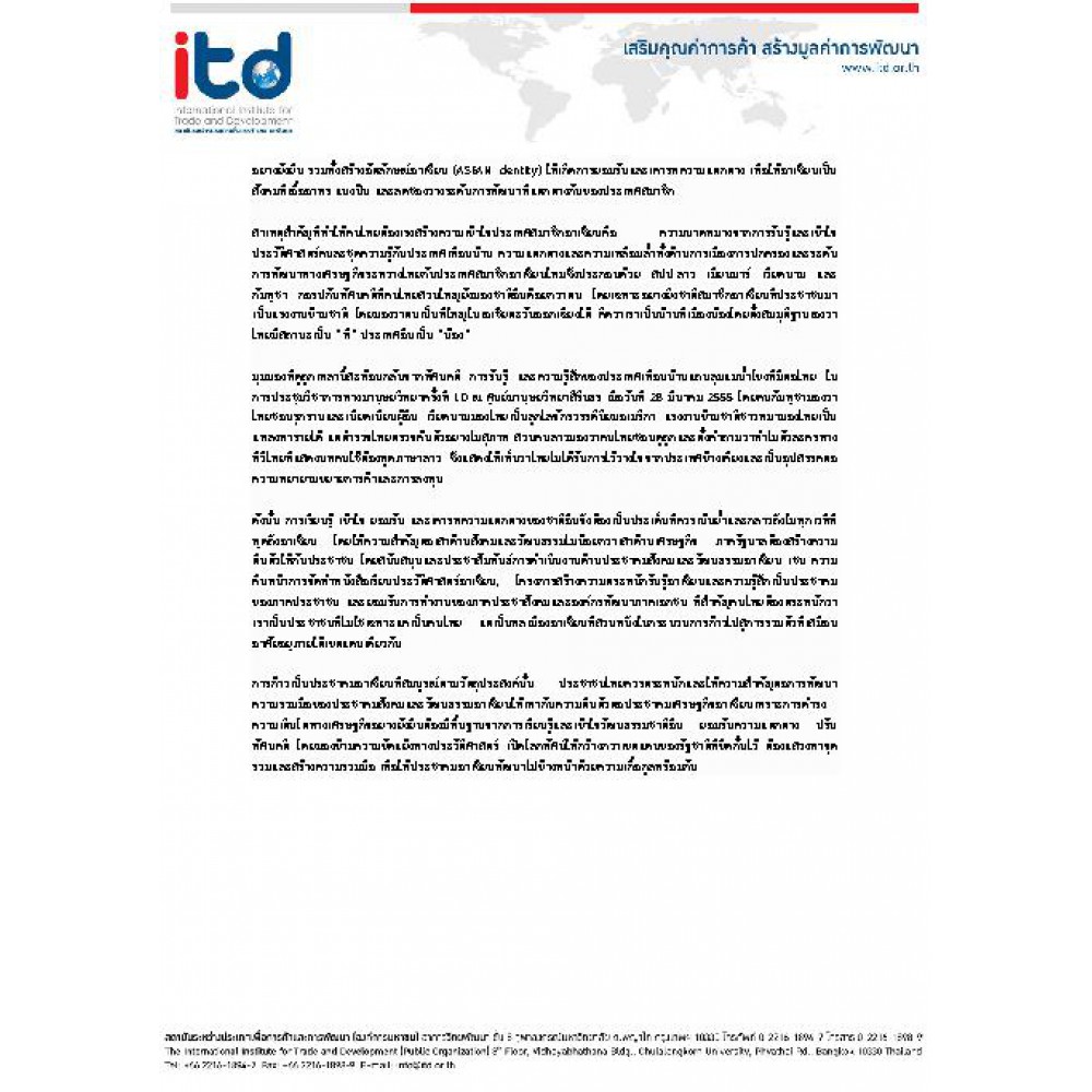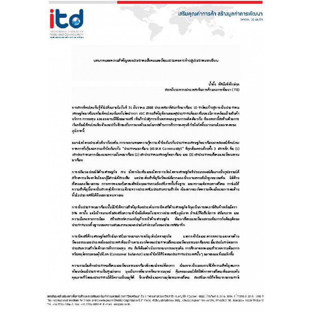 บทความวิจัยของสถาบันระหว่างประเทศเพื่อการค้าและการพัฒนา ITD