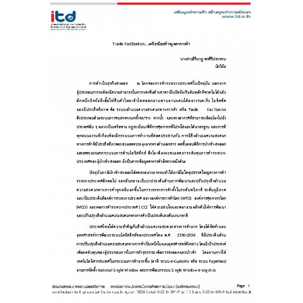 บทความวิจัยของสถาบันระหว่างประเทศเพื่อการค้าและการพัฒนา ITD