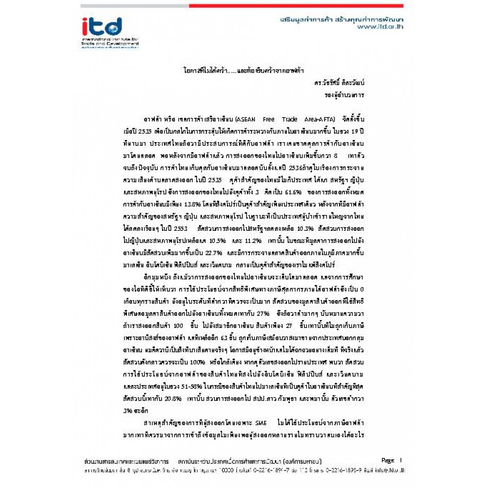 บทความวิจัยของสถาบันระหว่างประเทศเพื่อการค้าและการพัฒนา ITD